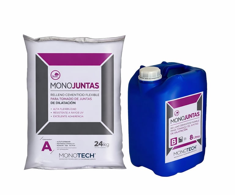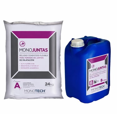 MONOJUNTAS es un mortero cementicio bicomponente flexible, desarrollado para el tomado y relleno de juntas de dilatación horizontales anchas, comprendidas entre 10 y 30 mm, en pisos y pavimentos donde la junta no debe quedar abierta.